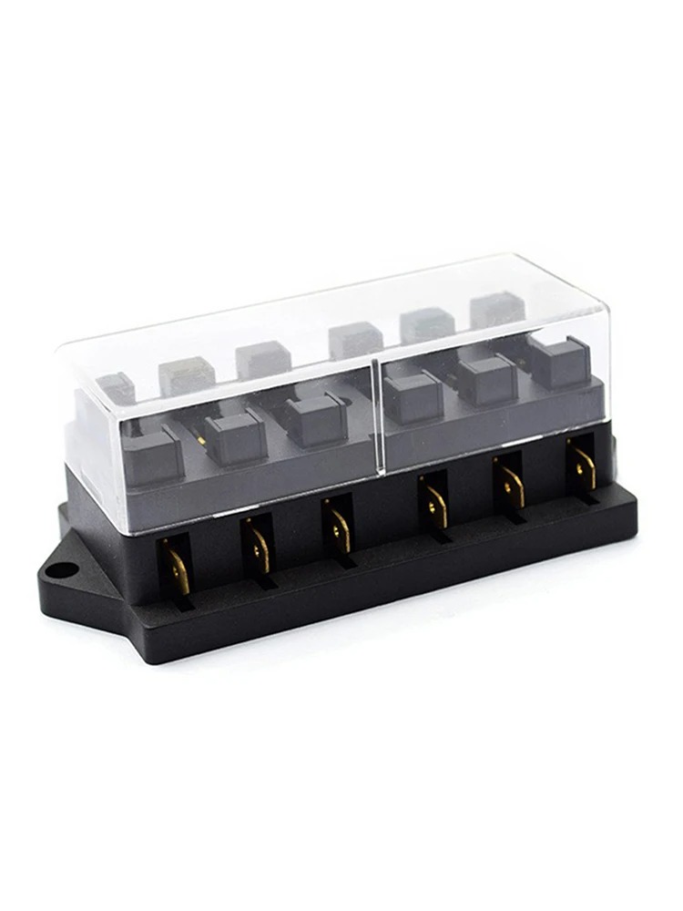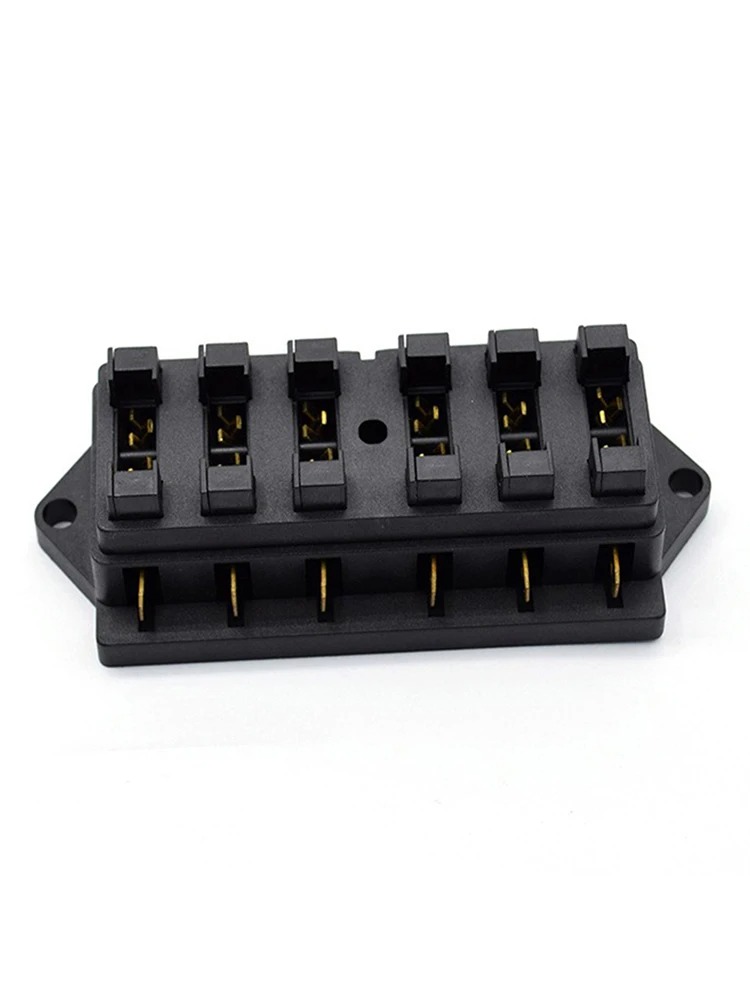6-položajna automobilska kutija sa osiguračima (model YJ-FB017) namenjena je za organizovanu i sigurnu raspodelu napajanja u vozilima, brodovima i drugim 12–24V DC sistemima. Poseduje zaštitni poklopac od polikarbonata (PC), otporan na prašinu i vlagu, kao i niklovane bakarne kontakte za pouzdan električni spoj.
