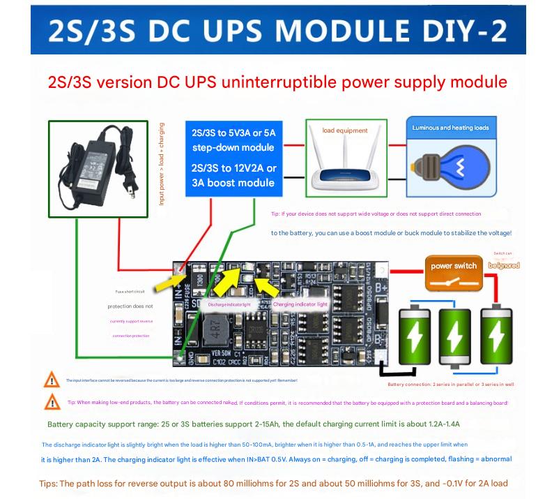 DC UPS napajanje 12V/15V 4A (verzija 3S) je inteligentni modul sa funkcijama punjenja i pražnjenja, osmišljen za neprekidno napajanje uređaja poput ruterâ, kamera, mikrokontrolera i druge osetljive elektronike.