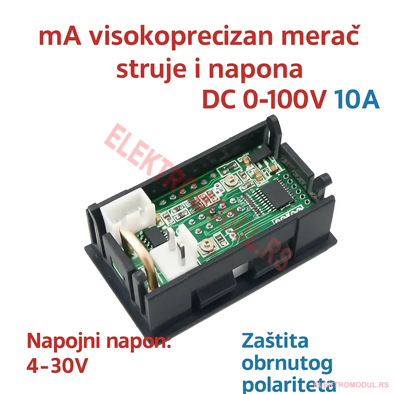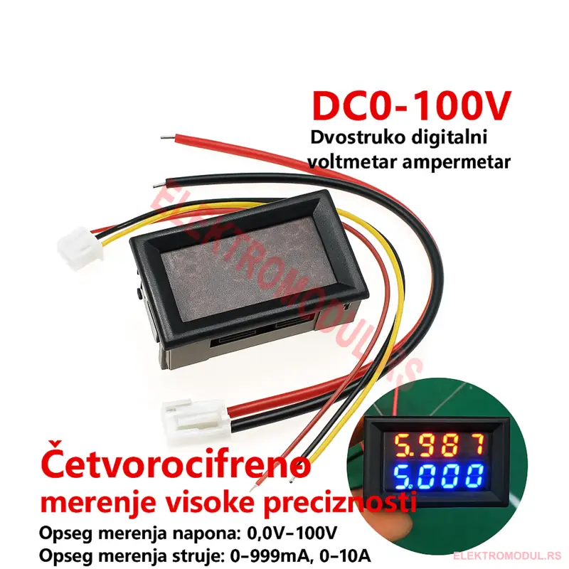 Digitalni voltmetar i ampermetar DC 0–100V (4 cifre) – Cena Srbija