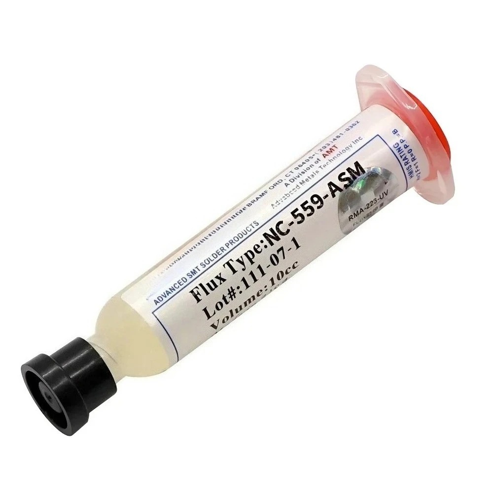 Flux pasta za lemljenje NC-559-ASM 10cc je visokokvalitetna flux pasta za lemljenje bez čišćenja (no-clean), namenjena za profesionalnu upotrebu u elektronici, posebno kod BGA, SMD i rework operacija.