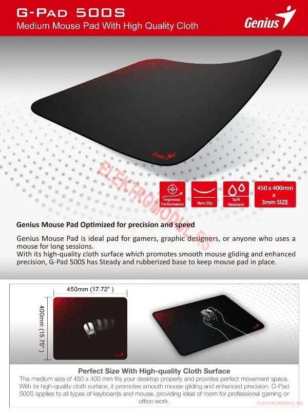 Genius Mouse Pad G-Pad 500S BLK – Cena Srbija je idealan za: