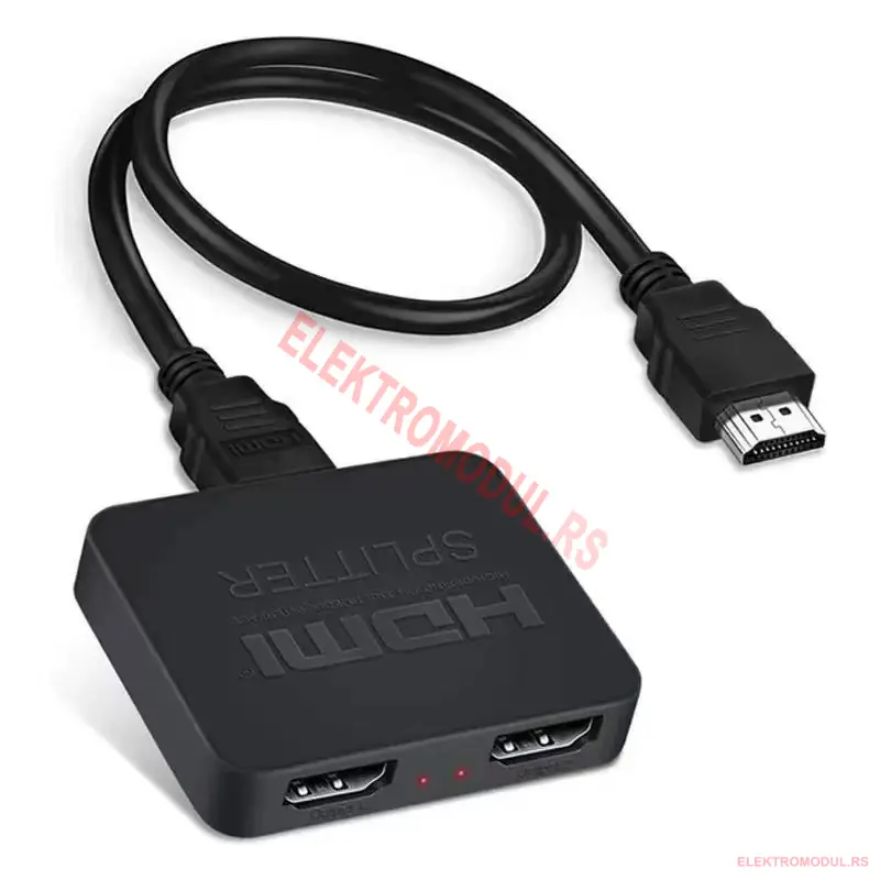 - Paket: 1× HDMI splitter 1×2, 1× Micro‑USB kabl. HDMI kablovi po izboru.