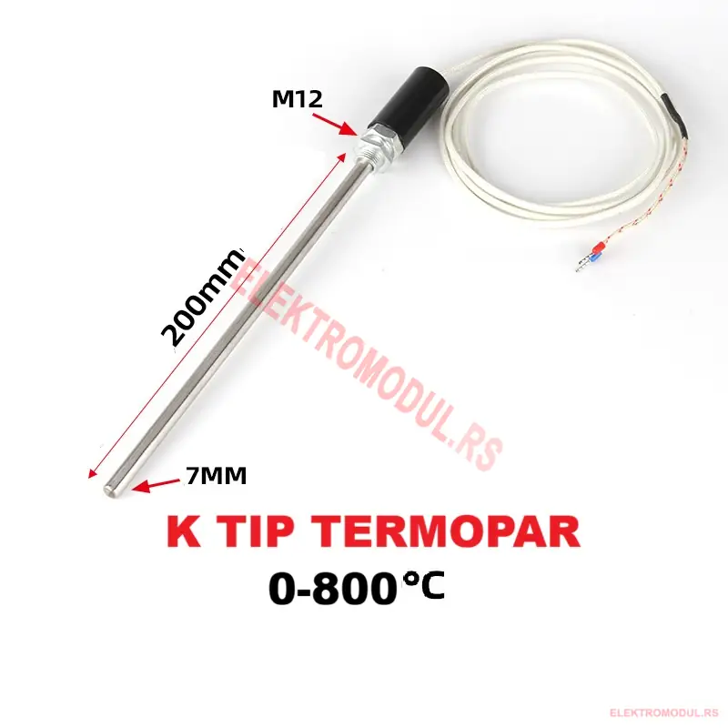 Za precizno i brzo merenje u zahtevnim uslovima, K tip senzor temperature Cena Srbija isporučuje stabilne rezultate, jednostavnu montažu i odličan odnos cene i performansi. Bilo da opremate peć ili industrijsku liniju, K tip senzor temperature Cena Srbija sa sondom 7×200 mm i kablom 2 m je pouzdan izbor spreman za rad.