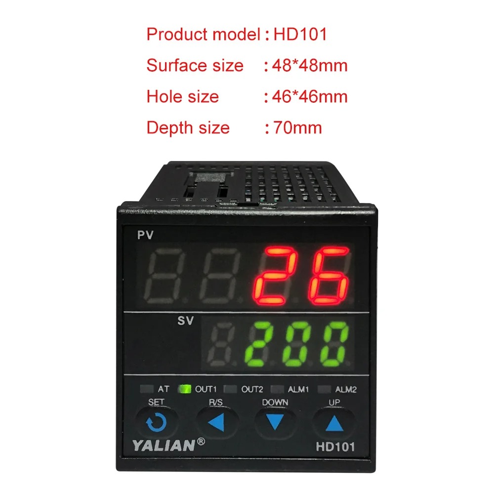HD101 PID termostat je višenamenski regulator temperature sa podrškom za SSR i klasične relejne izlaze, što ga čini pogodnim za širok spektar industrijskih i laboratorijskih aplikacija. Uređaj ima automatsko podešavanje PID parametara (auto-tune), dva nezavisna alarma, i dvostruki LED prikaz – za zadatu i izmerenu temperaturu.