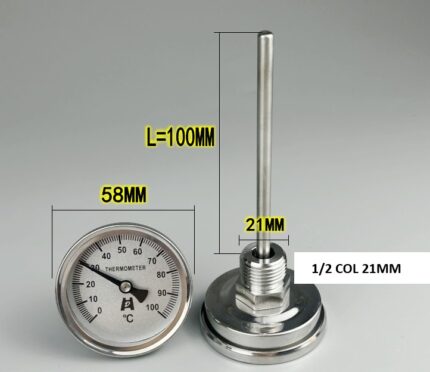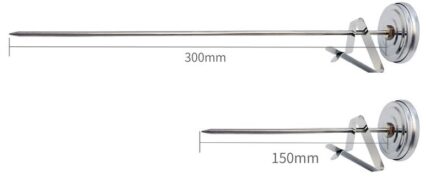 Dimenzije: Prečnik lica Profesionalni Roštiljski Termometar sa Sondom je 60 mm, ukupna dužina 80 mm, dužina navoja 48 mm,