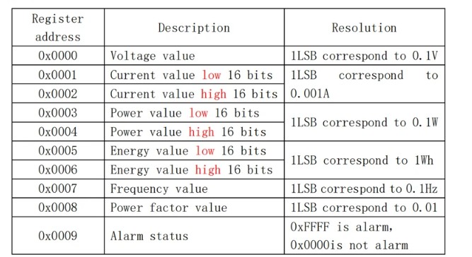 Podržani kodovi funkcija: 0x03, 0x04, 0x06, 0x41 (kalibracija), 0x42 (reset energije)