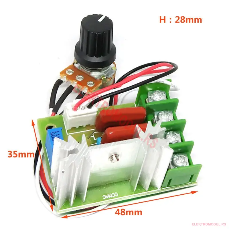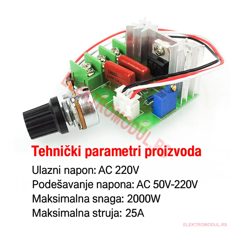 triac regulator, dimer 220V, regulator snage 2000W, kontrola napona 50–220V, regulator temperature, regulator brzine motora, elektronski reostat, kontroler jačine svetla, potenciometar.