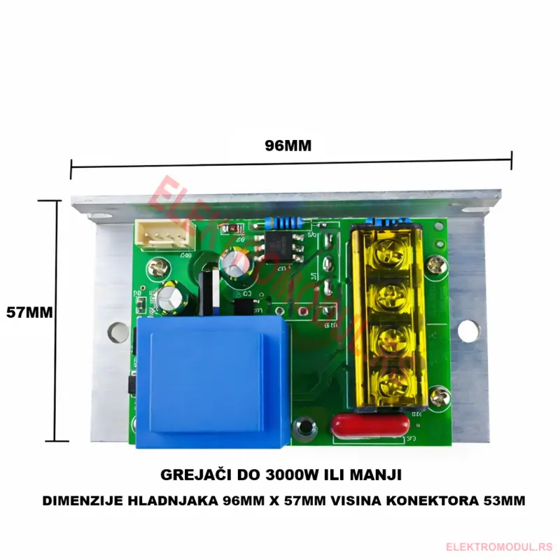 - Tip uređaja: Digitalni AC kontroler snage za grejače (triac/SCR fazna kontrola)