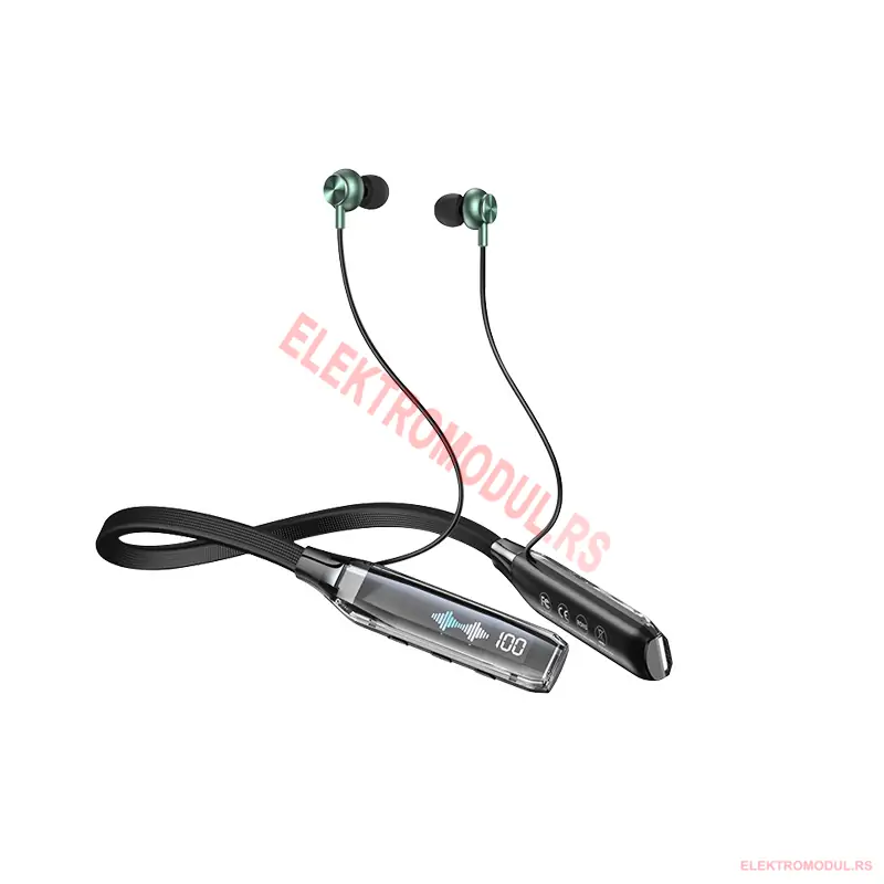 - Kontrole: dugmad na neckband-u (play/pause, volume, prijem poziva)