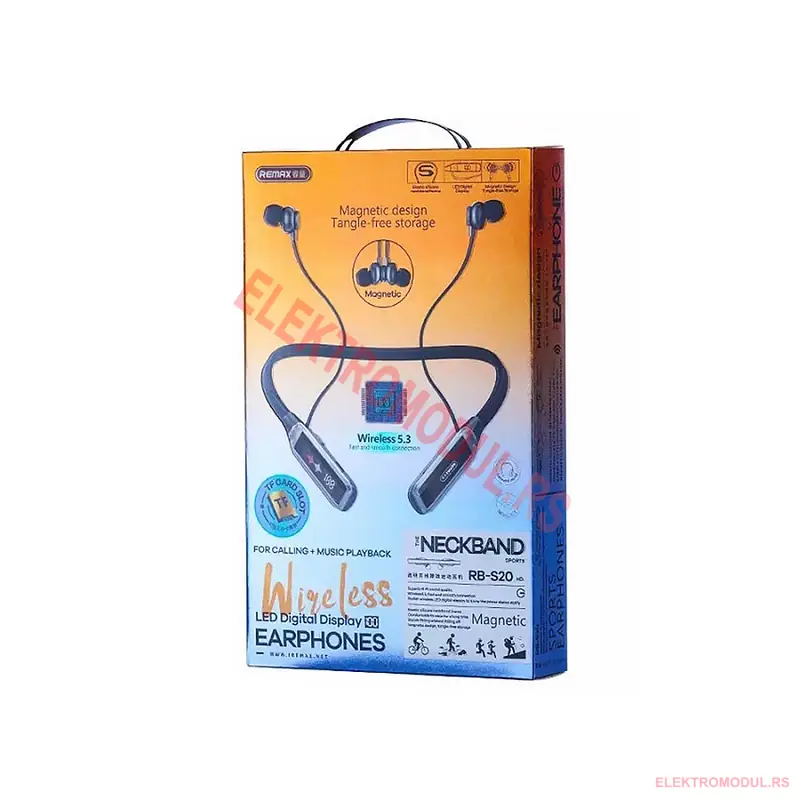 REMAX RB-S20 Transparent Neckband Bezicne Slusalice – Cena Srbija je deo REMAX RB neckband bezicne slusalice — kolekcije proizvoda dizajniranih sa fokusom na svakodnevnu prakticnost. Ovaj model je posebno namenjen za vozaci, sportisti, business korisnici. Neckband dizajn — slusalice sa gornjim delom oko vrata — donosi kombinaciju duzeg trajanja baterije i prakticnosti: slusalice se ne mogu lako izgubiti, magnetni spoj automatski pauzira muziku, a baterija traje 8-12 sati neprekidno.