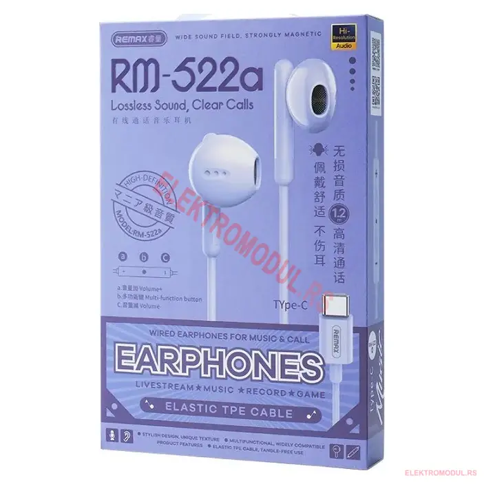 REMAX RM-522a USB-C Zicane Slusalice – Cena Srbija spada u kategoriju zicane slusalice sa USB-C konektorom i DAC-om. Po pristupacnoj ceni od 958 din donosi pouzdanu funkcionalnost i kvalitet karakteristican za REMAX brend, koji je sirom prepoznat kao proizvodjac dobre vrednosti za novac u svetu mobilne i kucne elektronike.