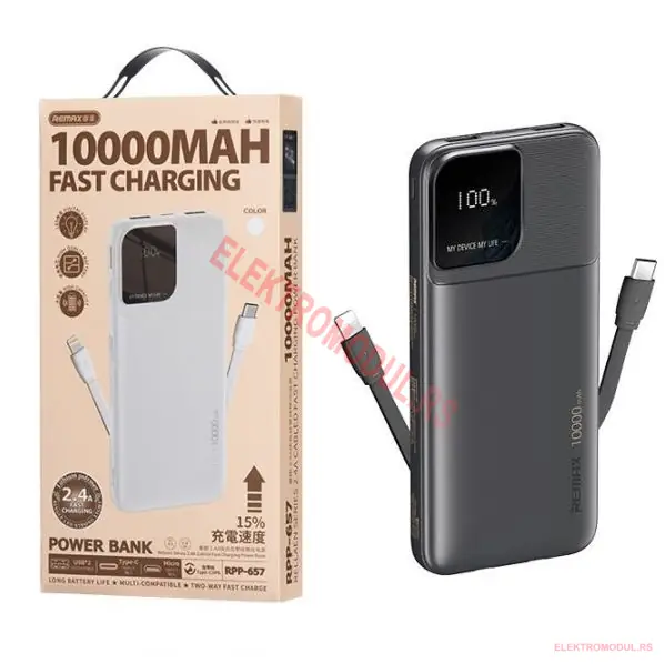 REMAX RPP-657 Black 10000mAh Power Bank je solidan izbor za sve koji zele pouzdanu rezervnu bateriju za svoje uredjaje. Sa kapacitetom od 10000 mAh i 12W fast charging, pokriva svakodnevne potrebe vecine korisnika. Po ceni od 1.822 din nudi dobru vrednost za novac. Dostupan online u Srbiji.