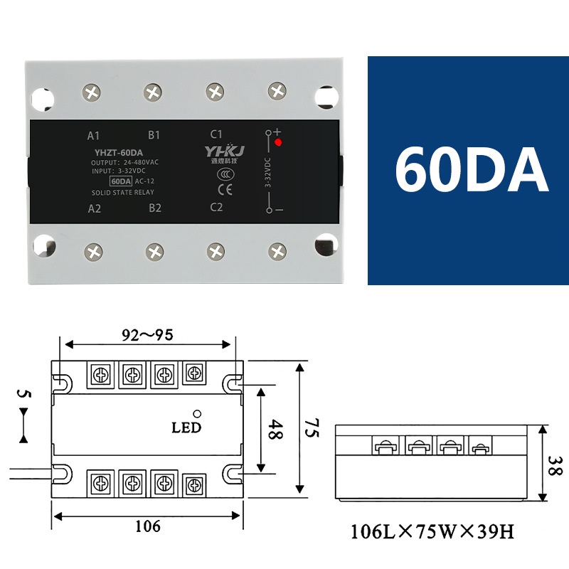 Specifikacije – SSR trofazni DC‑AC 3–32 VDC 60A YHZT‑60DA
