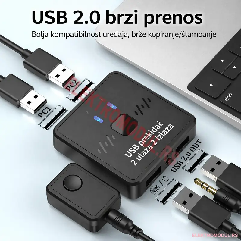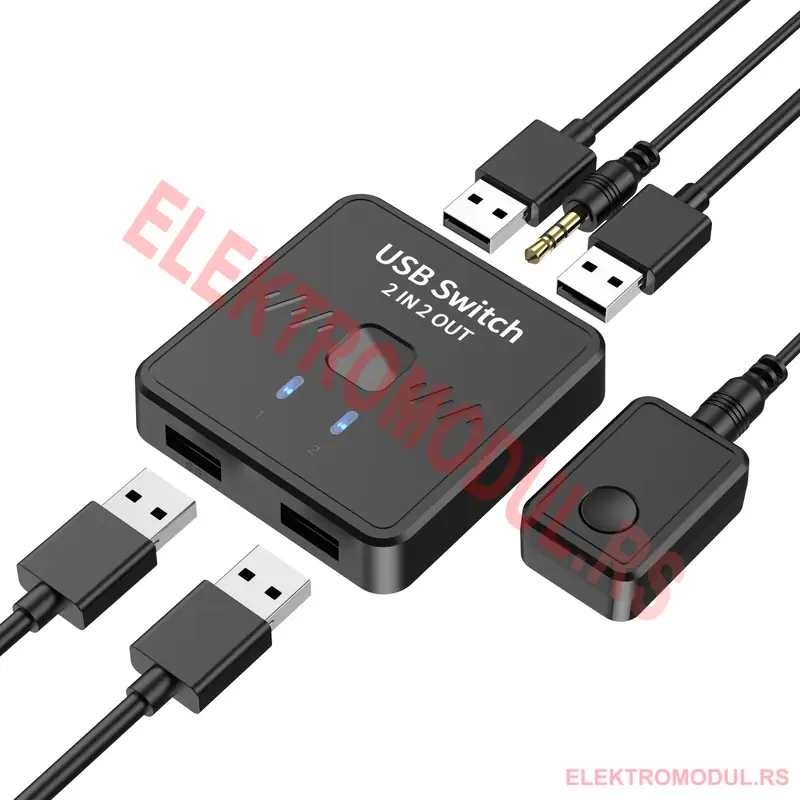 - USB switch 2×2, USB delilnik za štampač, deljenje tastature i miša, USB prebacivač