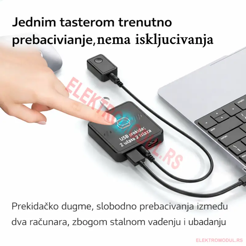 - Ovo nije KVM sa video prebacivanjem; služi isključivo za USB periferije.